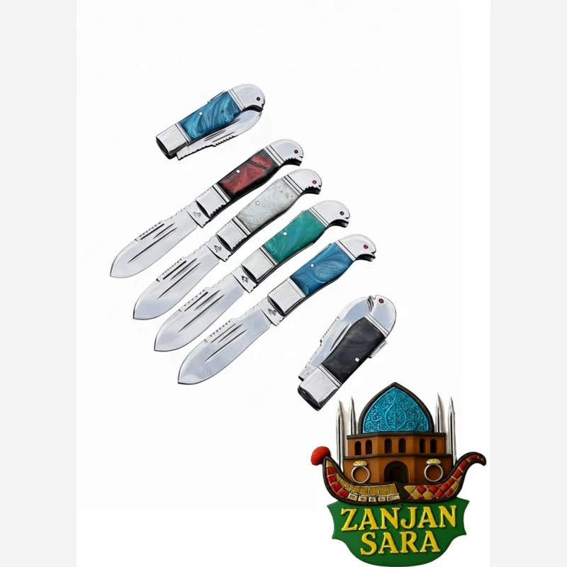 چاقو تاشوی میوه خوری استیل دسته رنگی زنجان