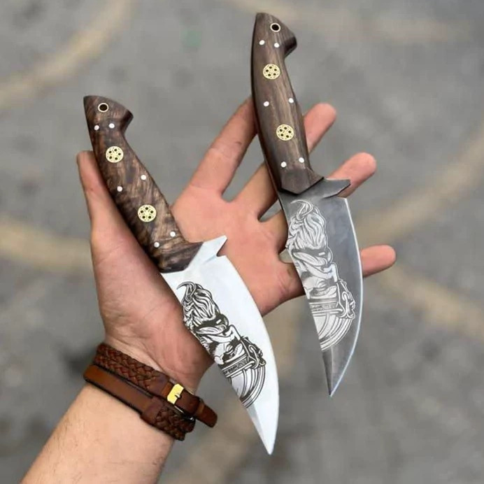 این چاقوی بیست سانتی کاملا دست ساز و دارای تیغه فولاد فنر سمباده ای و دسته میکارتای آلمانی نسوز پین دار و کیفیتی عالی و ماندگار می باشد.سختکاریشده، برندگی بالا و دوام طولانی، انتخابی مطمئن برای استفاده روزمره و حرفهای است. طراحی متعادل، کنترل بهتر و کیفیت ساخت سنتی، این محصول را از نمونههای صنعتی متمایز میکند.لازم به ذکر است قیمت مندرج برای هر عدد چاقو هست و امکان خرید تکی و ست و عمده(بالای ده عدد) هم وجود دارد که بالطبع قیمت تعداد عمده کمتر از قیمت خرده فروشی می باشد.